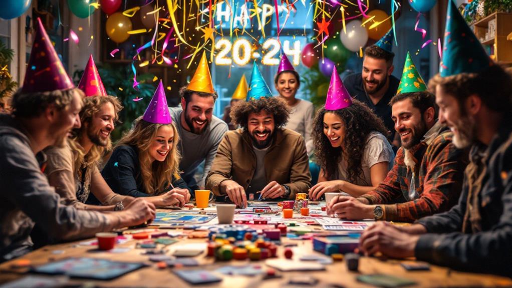While gathering for a family party, you'll find exciting card and strategy games to be a delightful improvement. AARP offers a variety of options that encourage friendly competition and engagement, like Uno Flip! and Ticket to Ride. These games accommodate multiple players, appealing to different demographic groups and ensuring everyone feels included. Scrabble and Sequence provide strategic depth and are easy to learn, allowing mixed-demographic gatherings to enjoy them seamlessly.