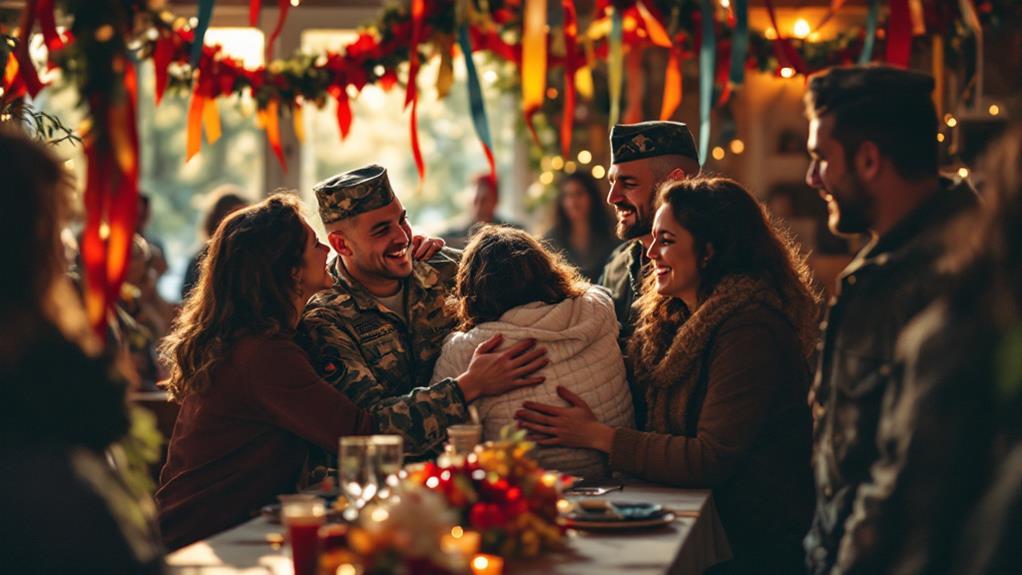 When welcoming home a soldier, you can create a memorable experience by organizing a festive homecoming party, planning a relaxing beach day, or hosting an Americana-themed backyard BBQ. Decorate their home with patriotic touches, prepare their favorite foods, and invite close friends and family to join the joyful celebration. You could also coordinate a lively block party or embark on/venture into/undertake an outdoor camping trip to help the soldier unwind and reconnect with loved ones. These thoughtful gestures not only showcase your appreciation for their service but also preserve cherished homecoming memories. Continue exploring these ideas to make their return truly special.