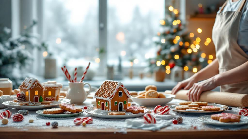 When baking sweets for a Christmas party, start by choosing a signature treat like festive cupcakes or holiday cookies. Plan your baking schedule, tackling non-perishables early and preserving delicate items for closer to the event. Consider dietary restrictions and offer options for various needs. Present your treats festively using tiered trays or holiday-themed packaging. Transport baked goods safely in sturdy containers. Estimate quantities based on guest count, aiming for 2-3 servings per person. Share recipe cards for guests to recreate favorites at home. Coordinate with other bakers to guarantee a diverse spread. For last-minute baking, opt for quick no-bake treats or time-saving shortcuts. The following tips will help you become the star baker of your Christmas gathering.
