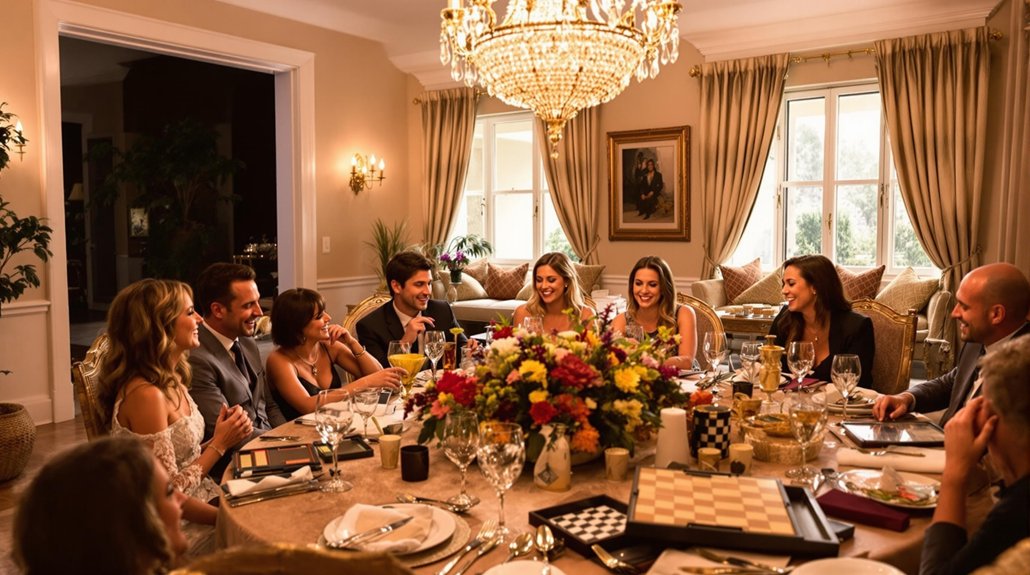 With "Truth or Drink," you face a comedic choice: reveal truths or take a drink, leading to funny confessions. Finally, music-based games like drinking to "Roxanne" by The Police keep the atmosphere lively and synchronized. These games guarantee memorable, laughter-filled nights with friends.